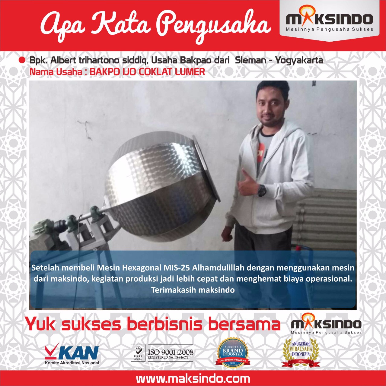 Bapak Albert menggunkan mesin pengaduk bumbu-bumbu (Hexagonal) dengan type MIS-10 guna menjalankan usaha Bapkao nya. Dengan meggunakan mesin hexagonal diharapakan produksi pembuatan semakin lebih cepat .