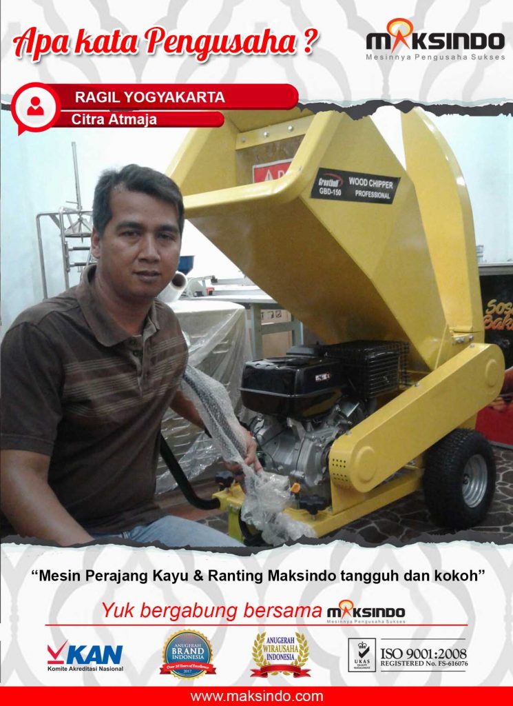 Mesin Perajang Kayu dan Ranting dari Maksindo memang sudah banyak digunakan oleh para pengusaha. Salah satu penggunanya ialah Bapak Ragil dari Yogyakarta. Beliau telah menggunakan mesin perajang kayu dan ranting dari Maksindo untuk membantu kegiatan merajang kayu dengan nama usaha Citra Atmaja.