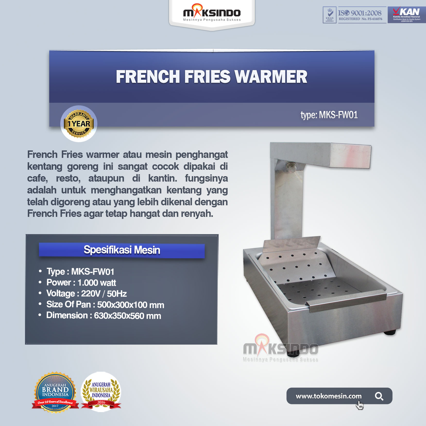 Jual French Fries Warmer (Penghangat Stik Kentang) MKS-FW01 di Semarang
