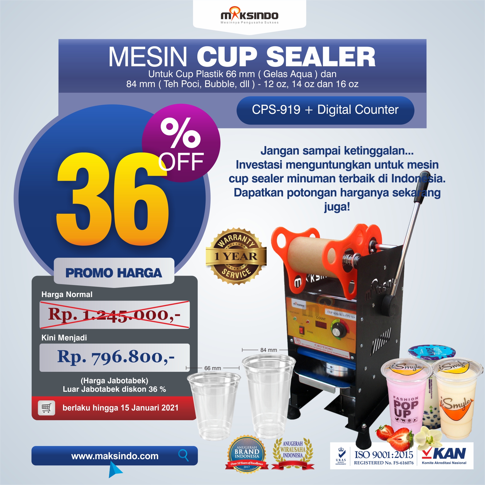 PT Toko Mesin Maksindo menghadirkan mesin cup sealer manual tipe terbaru untuk kemudahan proses pengemasan produk Anda. Fungsi mesin ini yakni menutup gelas plastik secara manual. Mesin cup sealer manual ini begitu cocok diaplikasikan untuk usaha minuman dalam gelas plastik. Cocok untuk usaha kecil menengah, restoran, cafe, kios minuman, teh poci, dll.