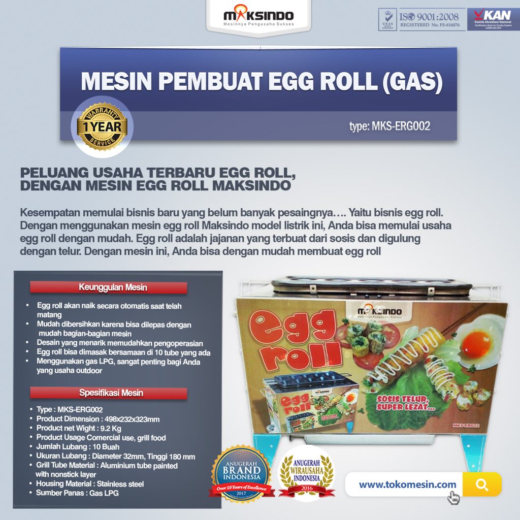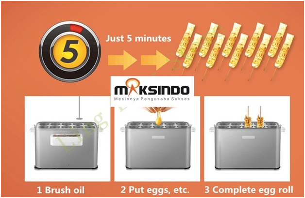 Peluang memulai usaha baru yang belum banyak kompetitornya. Yakni usaha egg roll. Dengan memakai mesin egg roll Maksindo model gas ini, Anda bisa mengawali bisnis sosis telur dengan mudah. Egg roll termasuk jajanan yang terbuat dari sosis dan digulung memakai telur. Dengan mesin ini, Anda bisa dengan mudah membuat egg roll.