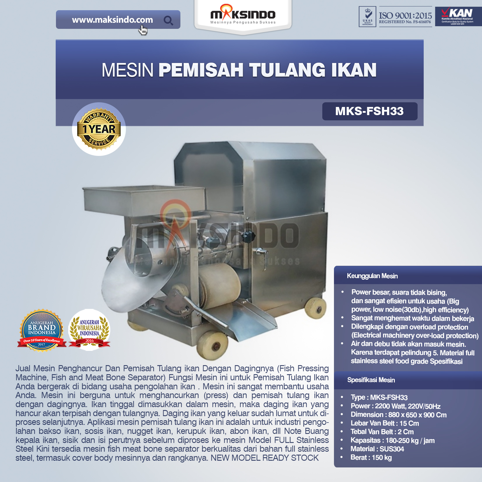 Jual Mesin Pemisah Tulang Ikan FSH33 di Semarang