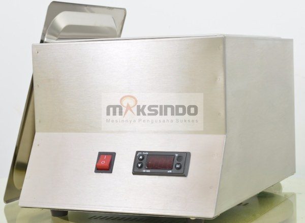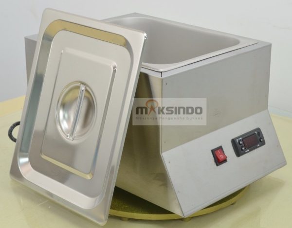Ingin mencairkan atau melelehkan coklat dengan mudah, efektif dan cepat ? Maksindo menyediakan mesin peleleh atau pencair coklat yang berfungsi untuk mencairkan coklat batangan dengan mudah dengan cara pemanasan. Suhu mesin ini bisa diatur sesuai dengan selera dan kebutuhan Anda.