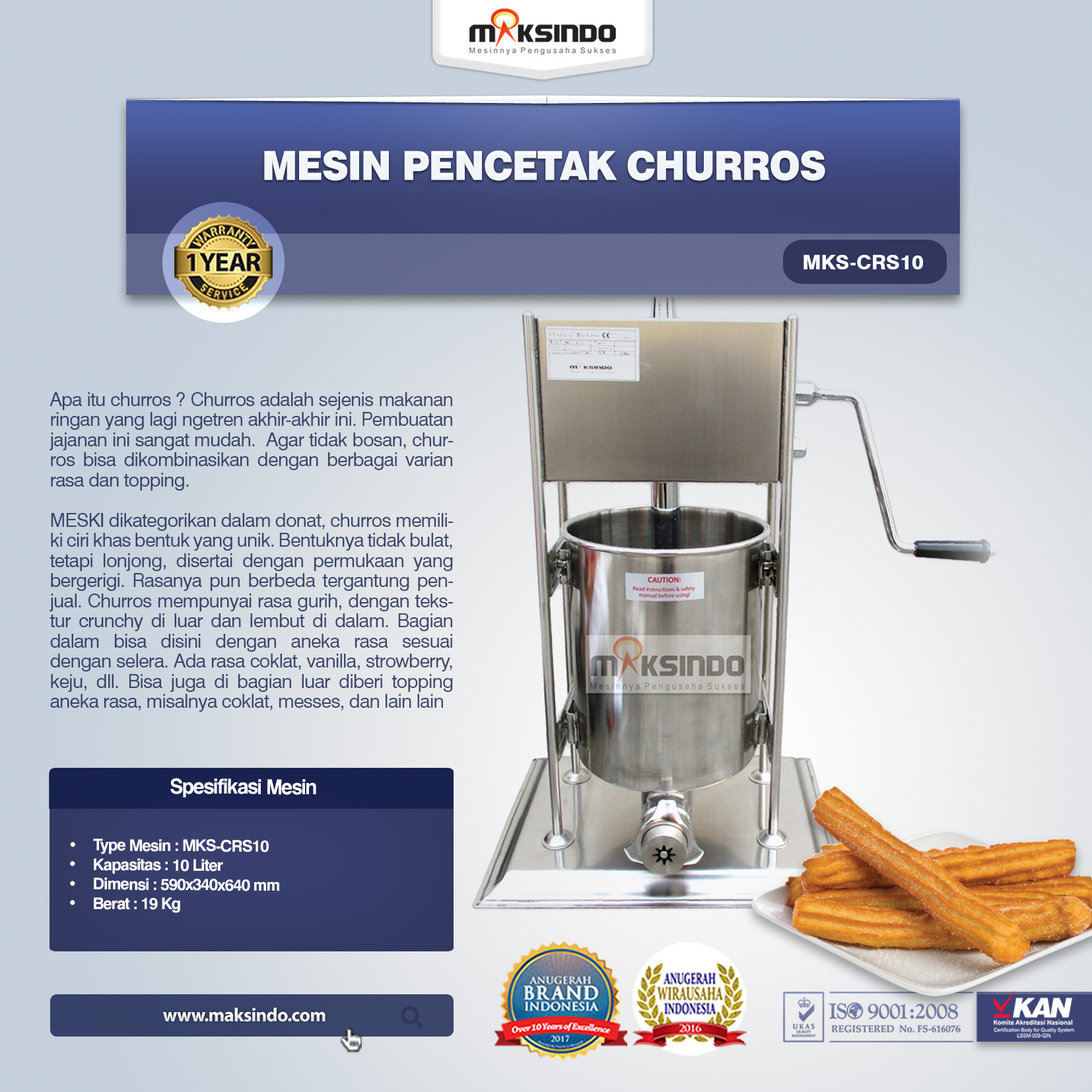 Jual Mesin Pencetak Churros MKS-CRS10 di Semarang