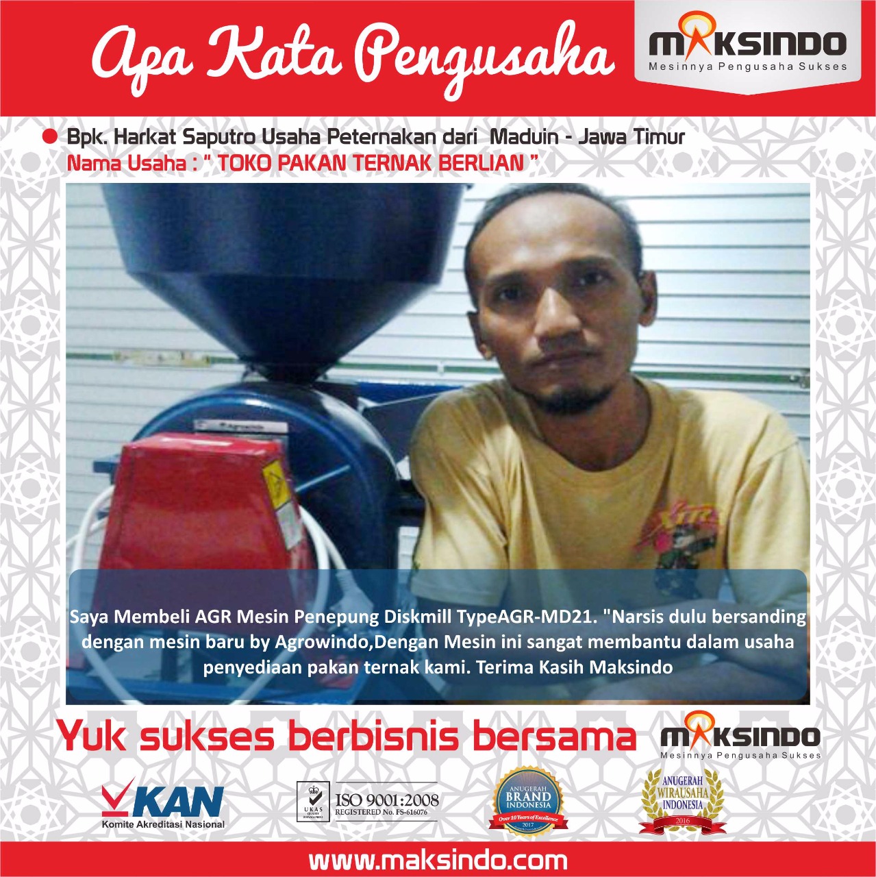 APA KATA PENGGUNA MESIN PENEPUNG DISK MILL SERBAGUNA MD-21 MAKSINDO: