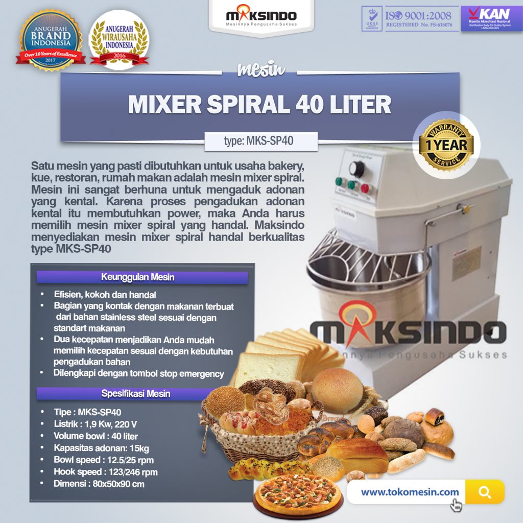 Maksindo menyediakan mesin mixer spiral handal berkualitas type MKS-SP40