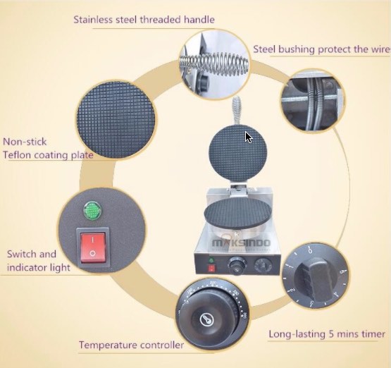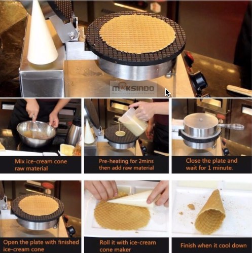 Mau usaha es krim ? Anda tidak perlu membeli cone di luar sana. Anda bisa membuat sendiri cone es krim dengan menggunakan mesin pebuat cone es krim ini. Plus Anda bisa membuat wadah es krim bentuk mangkuk. Karena kami menyertakan alat tekan yang bisa Anda gunakan untuk membuat mangkuk es krim