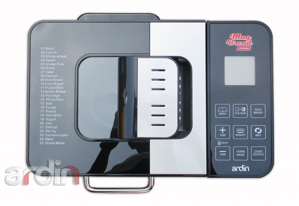 Mesin ini memiliki 25 menu yang bisa Anda pilih. Menu 1-24 adalah menu otomatis. Sedangkan menu 25 (home made) adalah menu yang bisa Anda atur. Urutan menu tersebut adalah : 1. Basic (roti tawar), 2. French (roti Prancis), 3. Whole Wheat (Roti gandum) 4. Sweat (roti manis), 5. Gluten Free (Roti bebas gluten), 6. Quick (roti sistem cepat) 7. Cake (kue), 8. Dessert (membuat desert) 9. Rice Bread (Roti beras), 10. Corn Bread (Roti jagung) 11. Purple rice (Roti ketan hitam), 12. Brown Bread (roti coklat), 13. Porridge (bubur), 14 Sticky rice (Ketan). 15. IMIX (pengadukan) 16. Dough (pengadukan adonan) 17. Knead (pengadukan) 18. Rice wine (beras ketan), 19. Yogurt (membuat yogurt 20. Jam (membuat selai) 21. Defrost (hilangkan bekuan) 22. Stir fry (tumis) 23. ferment & Bake (fermentasi / mengembangkan dan memanggang) 24. Bake (memanggang) 25. Home made (custom pengaturan sendiri)