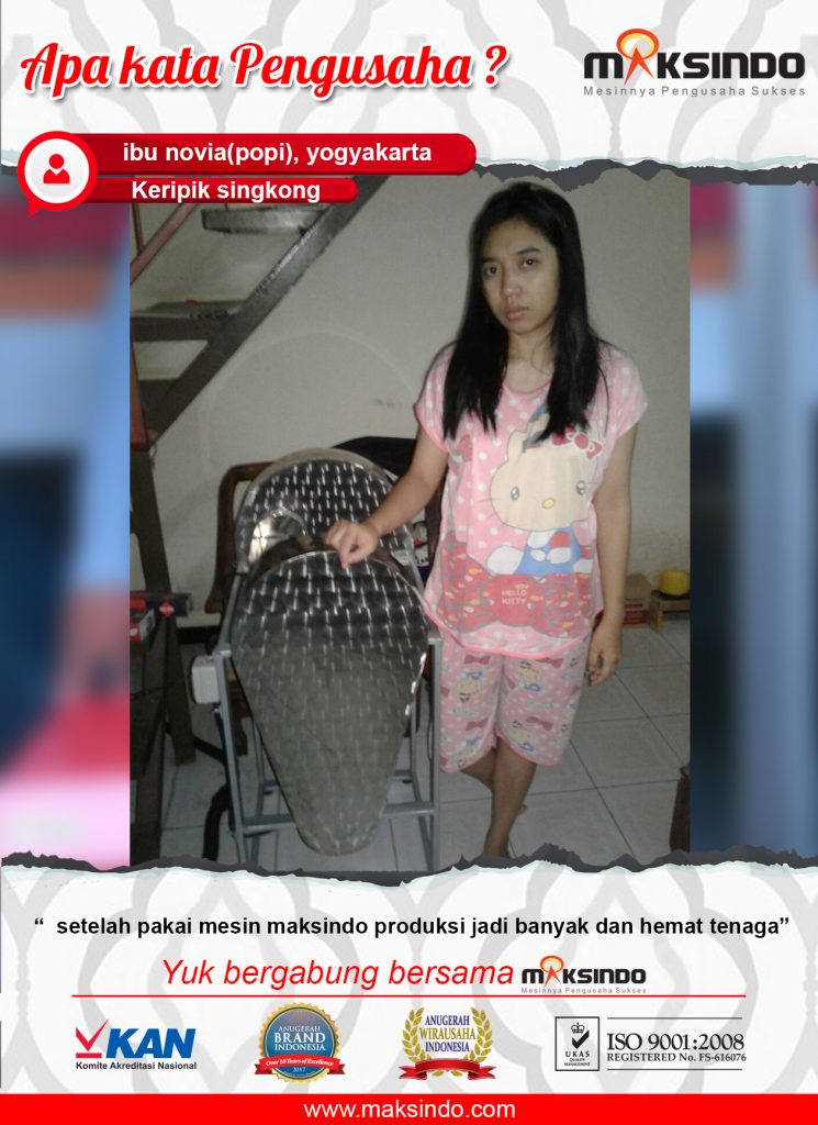 “Setelah pakai mesin maksindo produksi jadi banyak dan hemat tenaga.” kata Ibu Novia.