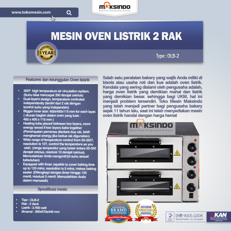 Toko Mesin Maksindo yang telah menjadi partner bagi pengusaha bakery sejak 11 tahun lalu, saat ini telah menyediakan mesin oven listrik handal dengan harga hemat