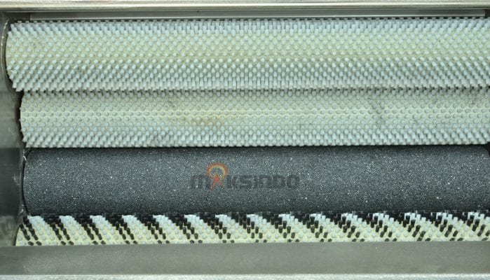 Mesin memiliki kelengkapan roll yang akan mempercepat pengupasan maupun pencucian buah dan sayur