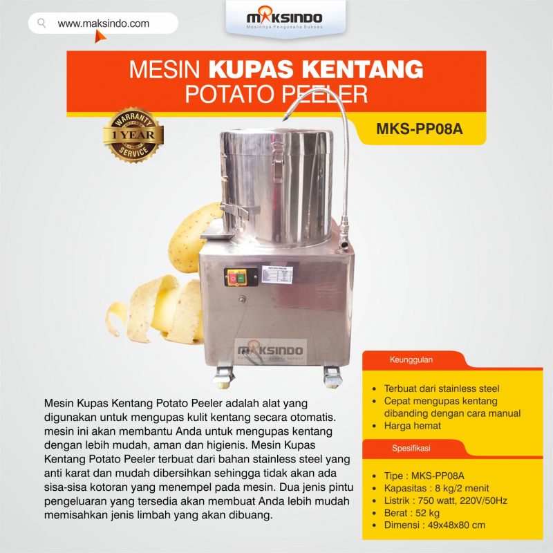hendak mencuci dan mengupas buah ataupun sayuran dengan efektif tidak memakan waktu yang lama? Inilah solusinya dengan memakai mesin pencuci dan pengupas dengan type HLP-800 di Toko Maksindo. kegunaan mesin ini adalah mencuci dan mengupas aneka buah dan sayuran yang permukaannya halus. Mesin ini terbuat dari bahan stainless steel sehingga terlihat higienis dan anti karat. Penggunaan dan pembersihan mesin ini sangat mudah. Dengan mesin ini bisa mempercepat dan mempermudah pekerjaan Anda karena mesin ini memiliki kualitas yang sangat bagus. Mesin ini cocok digunakan untuk peralatan rumah tangga ataupun yang mempunyai usaha yang memerlukan mesin ini.