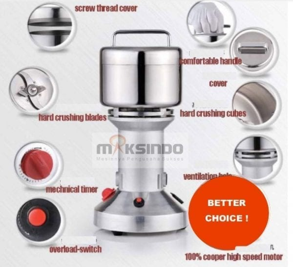 Saat ini Toko Maksindo sudah menghadirkan mesin berkualitas handal yakni Mesin Penepung Herba, Farmasi, Biji (ML100). Mesin ini mempunyai fungsi untuk menepungkan berbagai biji-bijian dan bahan lainnya yang kering menjadi partikel kecil yang bertekstur lembut dan halus. Bahan yang dapat ditepungkan dengan mesin ini yaitu seperti gingseng, jamur, wijen, kacang, dan bahan kering lainnya. Mesin ini pada umumnya juga dimanfaatkan untuk menepungkan bahan-bahan herba dan farmasi. Dengan menggunakan mesin ini dapat membuat proses penepungan semua bahan yang kering dengan gampang dan cepat sehingga pekerjaan menjadi lebih ringan.