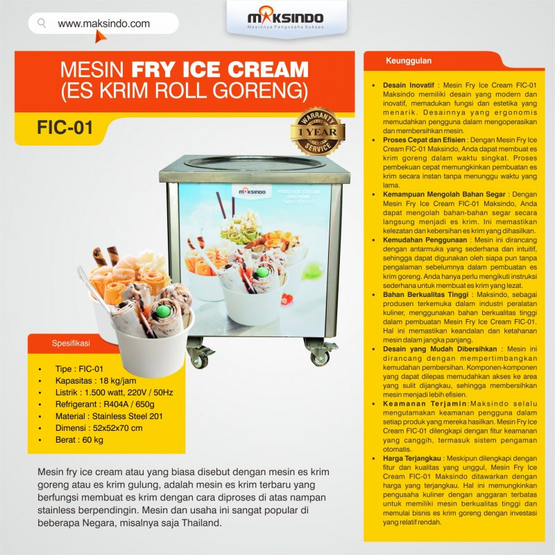 Bagi Anda yang ingin membuka usaha bisnis Es Krim, saat ini Toko Mesin Maksindo telah menghadikan Mesin Es Krim dengan berbagai macam type dan kegunaan yang berbeda. Salah satunya ialah Mesin Roll Fry Ice Cream type RIC36x2 ini. Dengan memakai mesin ini akan semakin membantu anda dalam proses pembuatan es krim roll.