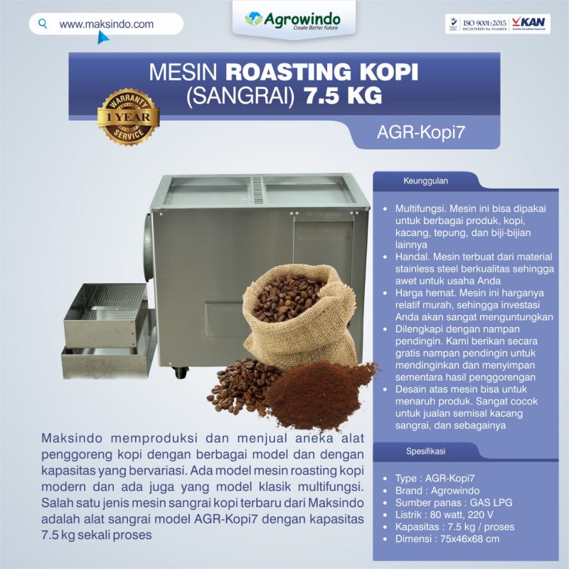 Jual Mesin Roasting Kopi (Sangrai) 7.5 kg AGR-Kopi7 di Semarang